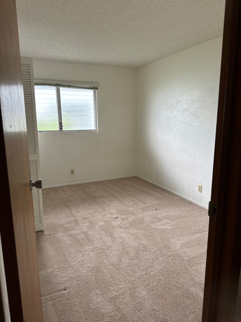 Partly furnished second floor, two bedroom, one bath apartment with one uncovered parking stall. This unit includes wall to wall carpeting, vinyl tile floors, refrigerator, range/oven, garbage disposal, a private lanai and washer dryer on the premise. Included in the monthly rent is water/sewer. Please be advised that all other utilities or services are paid by the tenant.